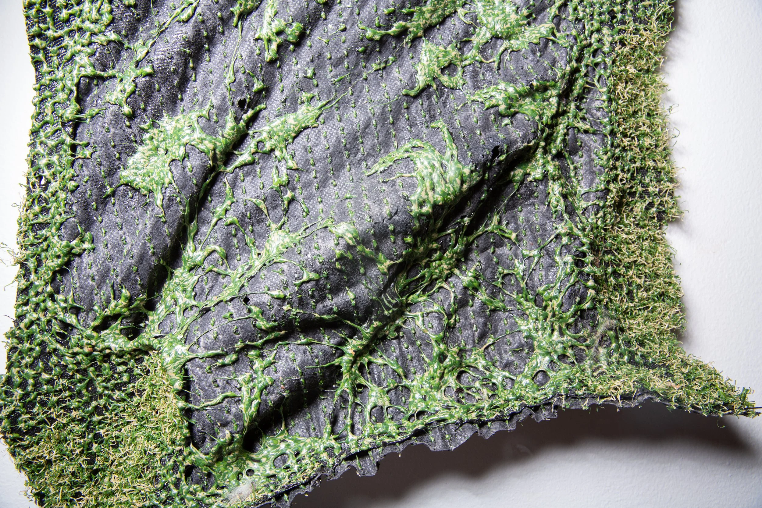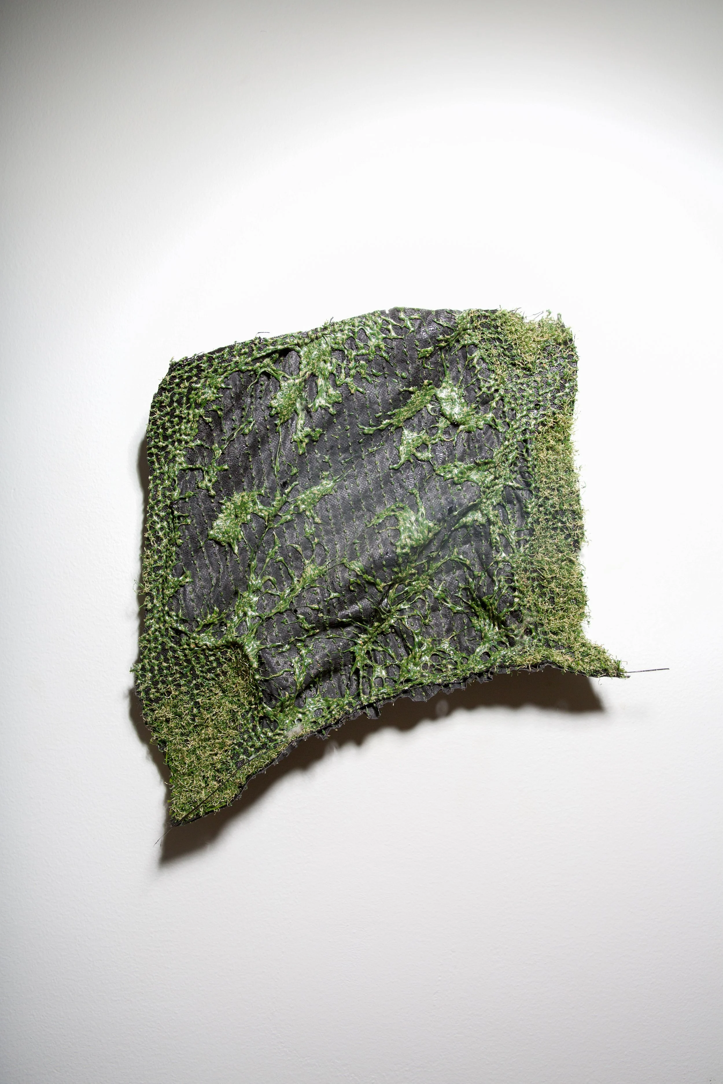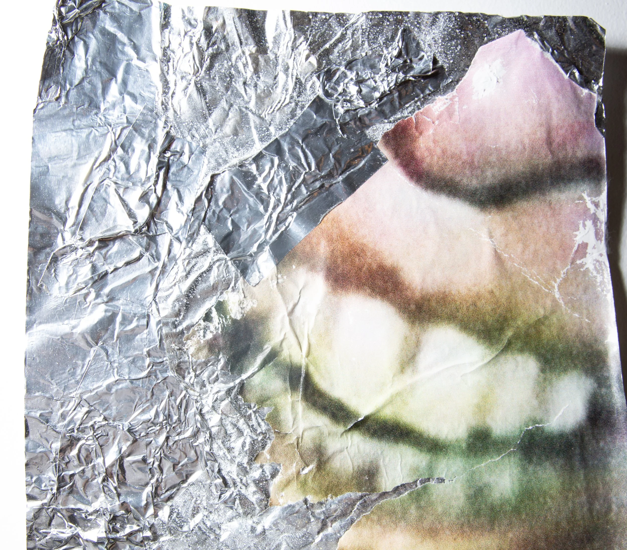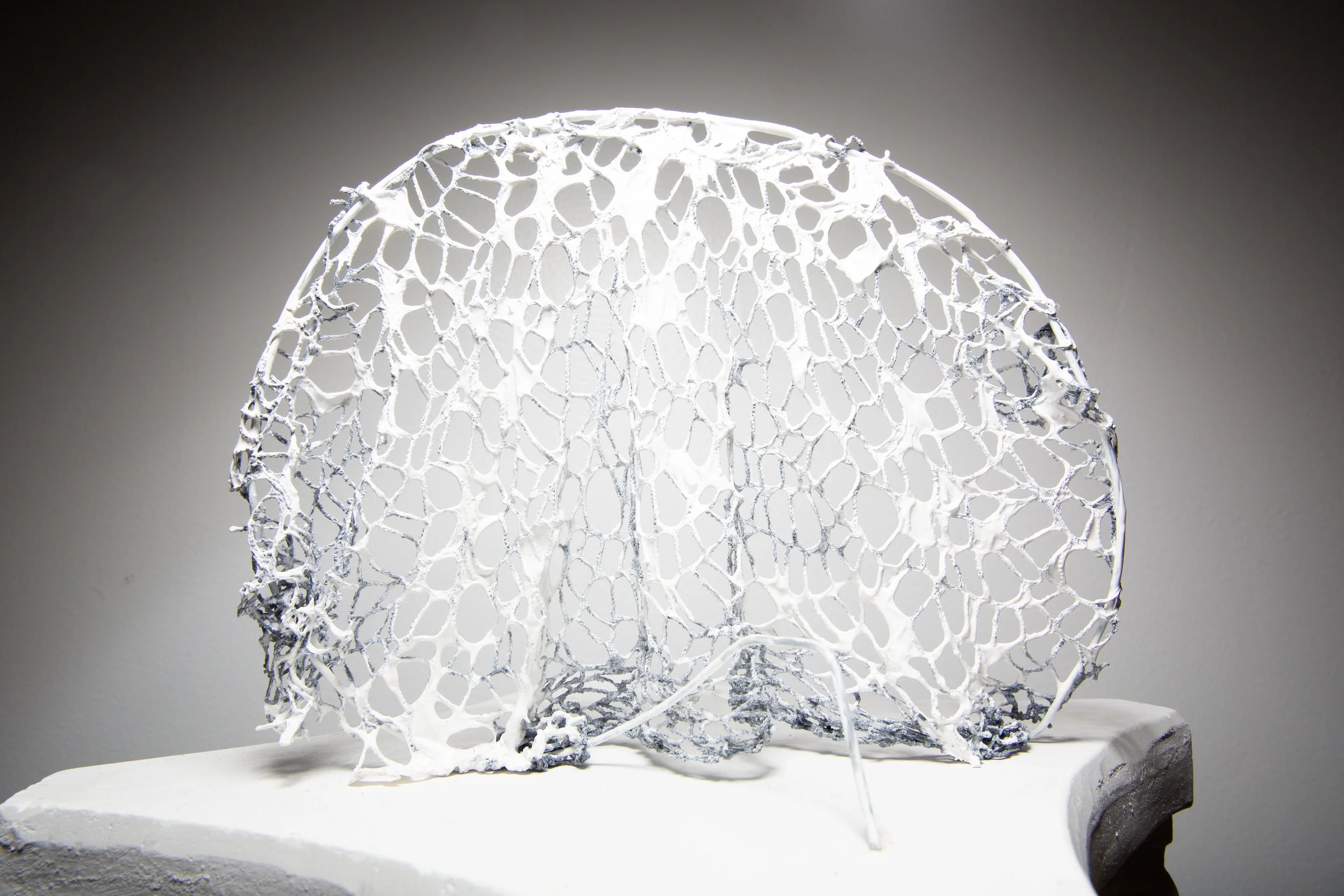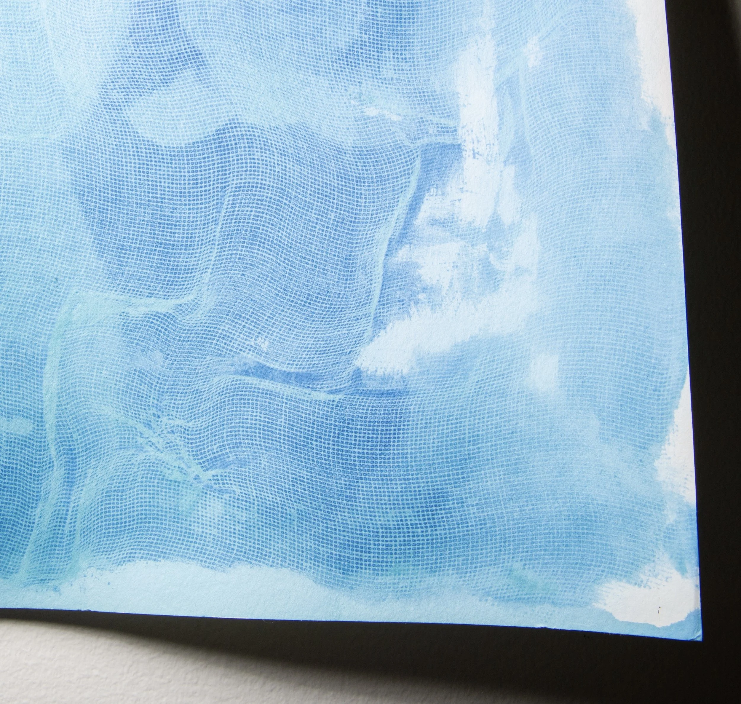 cyanotype on watercolor paper using a self made negative, layered with mesh for texture during exposure